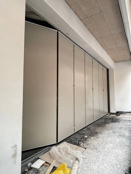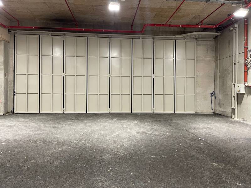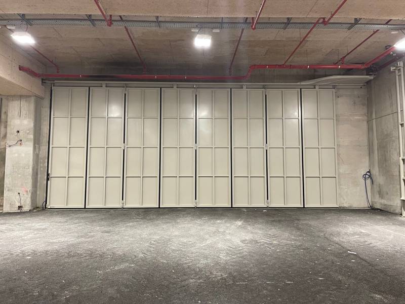 Manœuvre de secours par manivelle après débrayage du moteur par une poignée accessible en partie basse du treuil de motorisation. Embrayage par la seconde poignée quelle que soit la position du vantail.