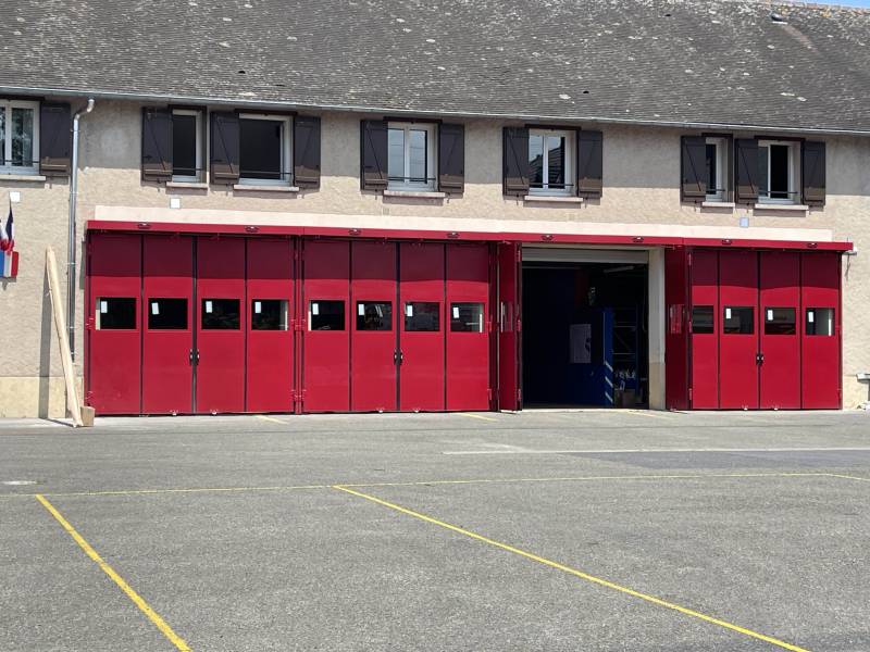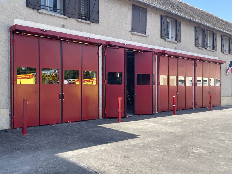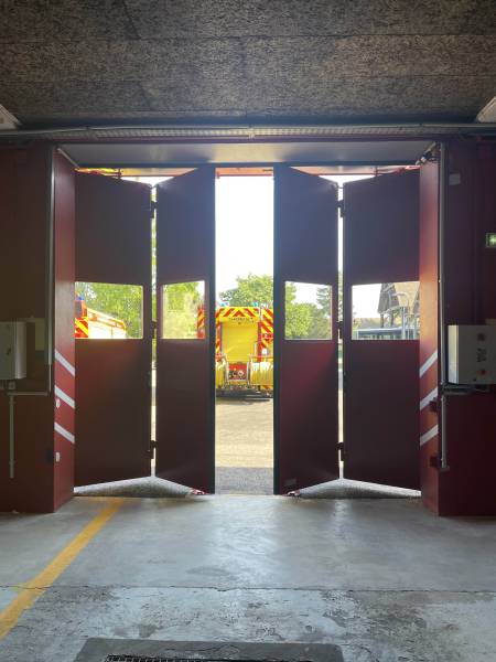 SMFdéveloppe des portes accordéon 2+2 sur mesure, à ouverture rapide, robustes, idéales pour les Centres de Secours.